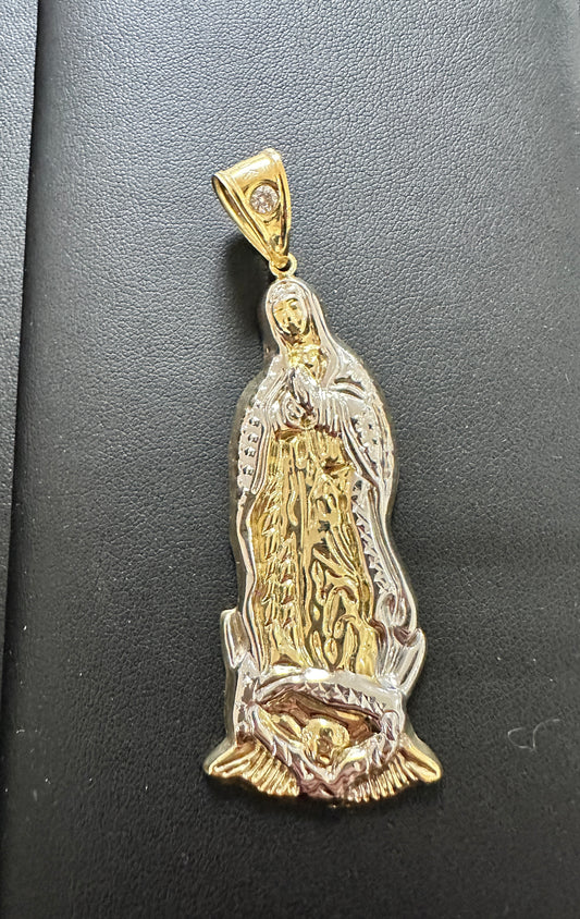 10KT 3.75” Yellow Gold Virgin Mary CZ Charm