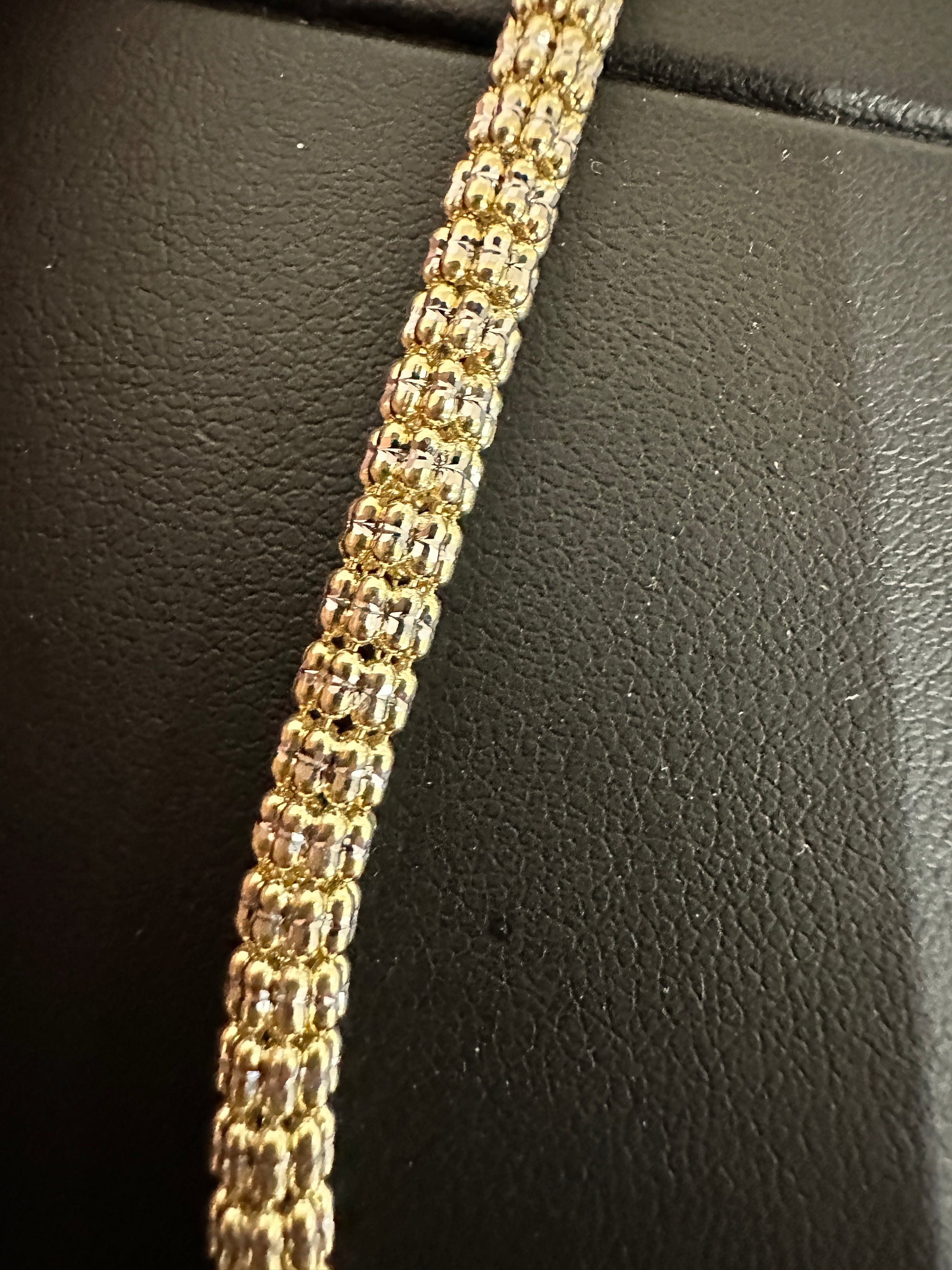 10kt Yellow Gold Rhodium Cut “Diamond Cut” Popcorn Link Chain “bling Chain” 22”